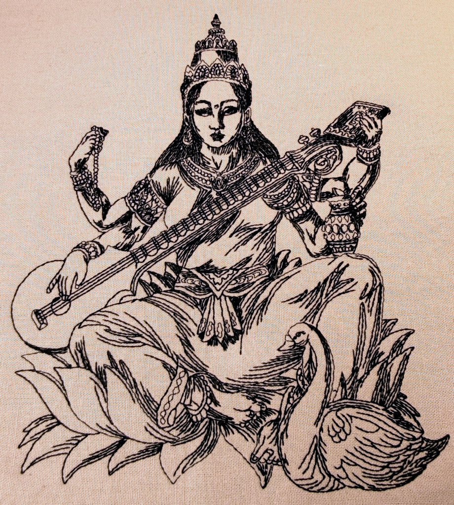 Fine linework and careful digitizing used to translate detailed artwork into clean, readable stitched form.